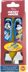 Perfekter Helfer für die Kleinsten, die das Essen mit echtem Besteck lernen. Das Set enthält eine abgerundete Gabel und einen Löffel, die für eine einfache und sichere Handhabung konzipiert sind. Die dekorativen Griffe mit Mickey-Mouse-Design ziehen jedes Kind an und machen das Essen zu einem angenehmen Erlebnis.