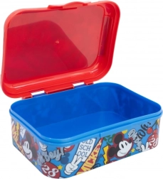 Elegante Kunststoff-Snackbox in der richtigen Größe, damit Kinder sie leicht in den Park, die Schule oder auf Ausflüge mitnehmen können, mit dem beliebten Mickey Mouse-Motiv.