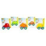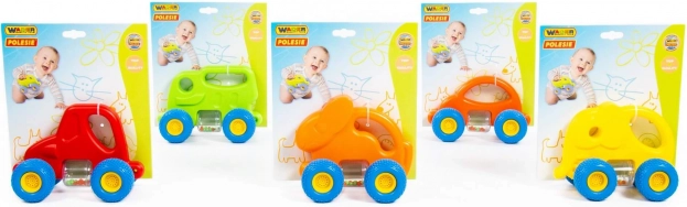 Das niedliche Auto im Hasen-Design wurde für sicheres und anregendes Spielen der Kleinsten entwickelt. Dank der Gummiräder mit grobem Profil ist die Fahrt auf verschiedenen Untergründen leise und gleichmäßig. Der zylindrische Behälter mit bunten Kügelchen rasselt angenehm und fördert die auditive Wahrnehmung.