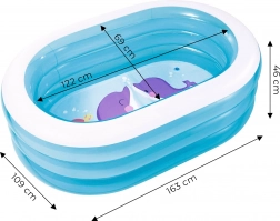 Design mit Meeresmotiven und Delfin-, Schildkröten- und Blasenmotiven stimuliert die Fantasie und Kreativität, was zu unvergesslichen Abenteuern bei jedem Badegang führt. Hergestellt aus hochwertigem Material, das dank drei aufblasbaren Ringen Festigkeit und Stabilität bietet.
