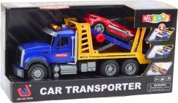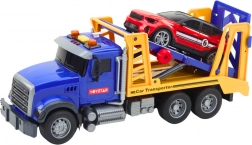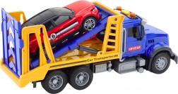 Zum Set gehören zwei Sportautos, die einfach auf den Anhänger geladen und entladen werden können. Der Transporter hat bewegliche Teile, die die Funktionen eines echten Transportmittels realistisch nachbilden.