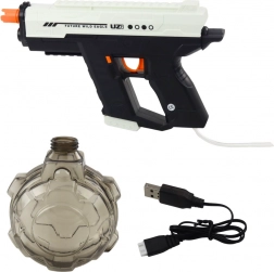 Die Pistole ist mit einer integrierten elektrischen Pumpe ausgestattet, die beim Betätigen des Abzugs einen starken Wasserstrahl startet.