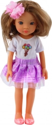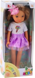 Die Puppe Pretty Girl trägt ein weißes T-Shirt mit farbigem Ballondruck, das perfekt zu dem violetten Tüllröckchen mit dezentem Glanz passt. Das Outfit wird durch rosa Schuhe abgerundet, die dem Stil ein modisches und fröhliches Aussehen verleihen. Abnehmbare Kleidung ermöglicht es, die Puppe umzukleiden und neue Outfits zu entwerfen. Dank der beweglichen Arme, Beine und des Kopfes ist die Puppe leicht zu handhaben und kann gesetzt, bewegt oder in verschiedene Szenarien inszeniert werden.