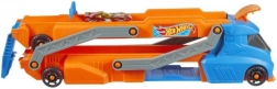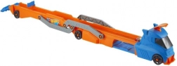 Machen Sie sich bereit für erstaunliche Rennen und Stunts mit dem Hot Wheels LKW. Dieser riesige LKW kann bis zu neun Spielzeugautos laden, die dank der verlängerbaren Ladefläche auf 76 cm wie im Blitz starten. Die Kabine dient als Abschussvorrichtung und ermöglicht es den Autos, zu wilden Fahrten für neue Abenteuer aufzubrechen.