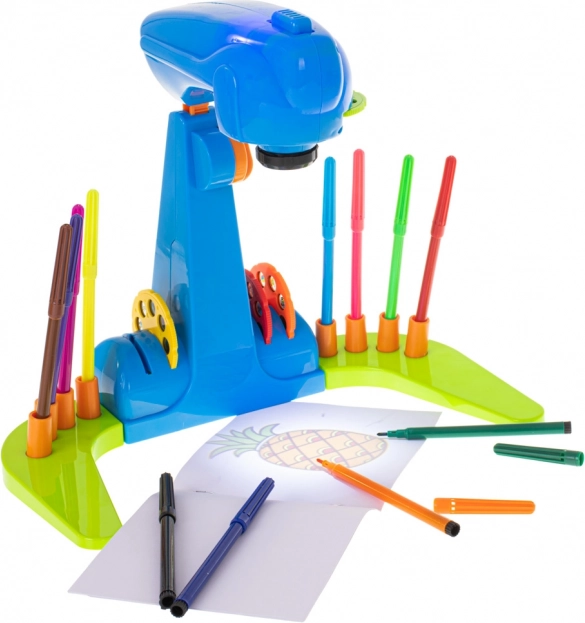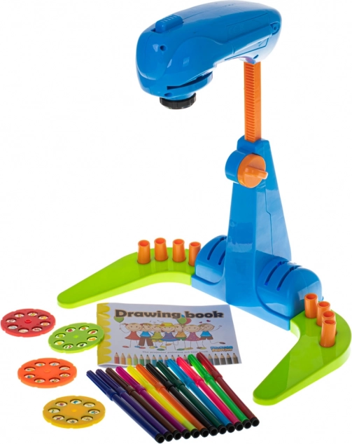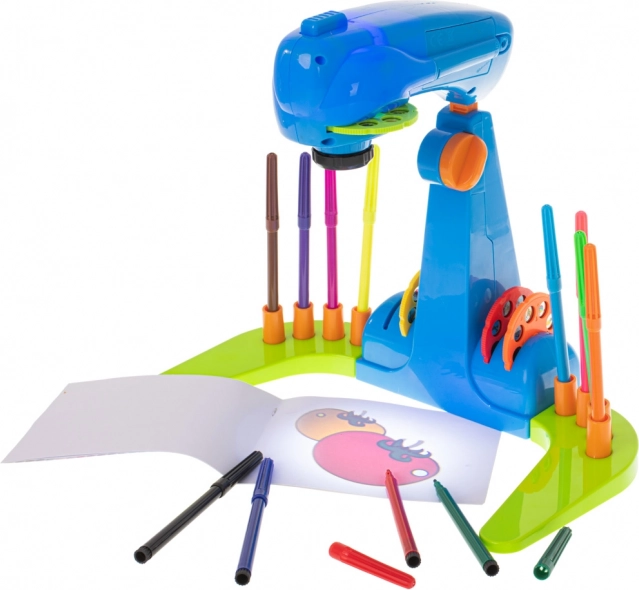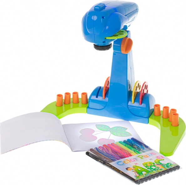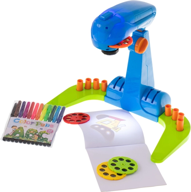Der Kinderprojektor zum Zeichnen ist ein unterhaltsames interaktives Spielzeug, das die Kreativität und die Feinmotorik fördert. Der Projektor ist mit bunten Scheiben ausgestattet, von denen jede 8 Bilder zur Projektion enthält.