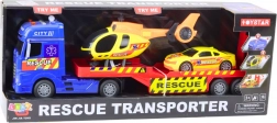 Das Set beinhaltet drei realistische Fahrzeuge: einen LKW, einen Hubschrauber und ein sportliches Rettungsfahrzeug.
