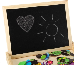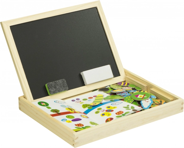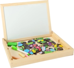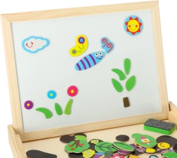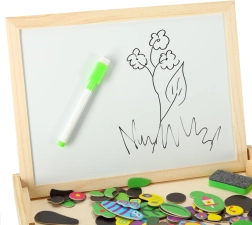 Lassen Sie der Kreativität Ihres Kindes freien Lauf mit dieser multifunktionalen Tafel. Diese aus hellem, natürlichem Holz gefertigte Tafel bietet sowohl eine magnetische, weiße Seite als auch eine traditionelle Kreideseite. Ideal für Kinder, um spielerisch ihre Ideen zu verwirklichen und ihre Fantasie anzuregen.