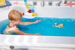Der Teddy-Bär mit sanften Formen ist sicher für die Kleinsten, leicht zu greifen und schwimmt hervorragend. Bunte Elemente fördern die Feinmotorik, die Sinneswahrnehmung und die Logik beim Entdecken des Wasserflusses.