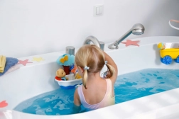 Die Basis lässt sich einfach auf der glatten Oberfläche der Badewanne oder Duschwand befestigen. Das Spielzeug sitzt stabil und ist immer griffbereit.
