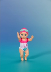 Geblümter Badeanzug, rosa Kappe und mintfarbene Brille unterstützen thematisches Spiel kleiner Schwimmerinnen und Schwimmer.