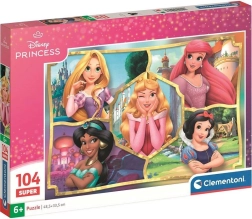 Puzzle "Disney Prinzessinnen Super 104" von Clementoni ist für Kinder ab 6 Jahren konzipiert. Dieses originelle Puzzle hat 104 Teile und misst nach dem Zusammenbau 48,5 x 33,5 cm, was eine großartige Größe zum Spielen und Ausstellen bietet.