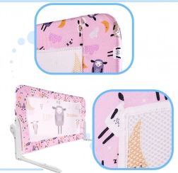 Die Installation ist schnell und ohne Bohren – die Füße werden einfach unter die Matratze geschoben. Das zarte rosafarbene Design mit Schäfchenmotiv passt in die meisten Interieurs und macht das Kinderzimmer gemütlicher. Das Gitter ist ideal für den Übergang vom Gitterbett zum großen Bett und hilft Eltern und Kindern, ruhiger und sicherer zu schlafen.