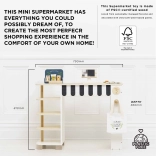 Der Kinder-Verkaufsstand von LE TOY VAN aus der preisgekrönten Honeybake-Kollektion verwandelt jedes Zimmer in einen kleinen Laden. Dank der funktionalen Kasse, dem Förderband und dem Scanner schlüpfen Kinder in die Rolle von Verkäufer und Kunde und fördern Kommunikations-, soziale und kognitive Fähigkeiten. Inklusive Regal zur Warenpräsentation sowie realistischer Lebensmittel, Zahlungskarten und Spielgeld.