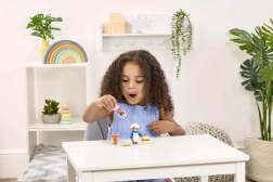 Figuren und Küchenzubehör fördern Kreativität, Kommunikation und die Entwicklung der Feinmotorik.