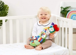 Diese weiche und leichte Textilraupe begeistert Babys auf den ersten Blick. Lebendige Farben und Kontraste unterstützen die visuelle Stimulation, während vielfältige Materialien und raschelnde Elemente zum Entdecken mit Tastsinn und Gehör einladen. Der integrierte babysichere Spiegel hilft Kindern, ihr eigenes Spiegelbild zu entdecken, und der weiche Beißring lindert das Zahnfleisch beim Zahnen.