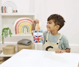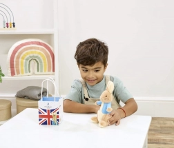 Das Spielzeug wird aus sorgfältig ausgewählten, hochwertigen und nachhaltigen Materialien hergestellt und kommt in einer eleganten Geschenktasche mit Union-Jack-Motiv – sofort bereit zum Verschenken.