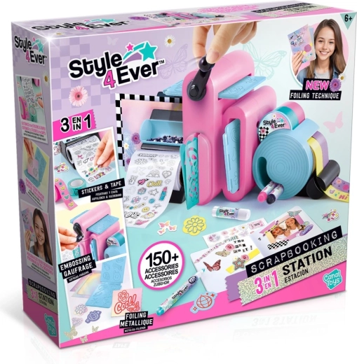 Das Kreativstudio 3-in-1 STYLE 4 EVER ist ein multifunktionelles Kreativset für Kinder ab 6 Jahren, das drei beliebte Techniken vereint – die Herstellung von Aufklebern, das Prägen sowie die Gestaltung/Verzierung von Washi-Tapes. Die manuelle Maschine in Pastellfarben wird bequem mit einem Drehrad bedient und ermöglicht plastische Muster, originelle Sticker und personalisierte Deko für Tagebücher.