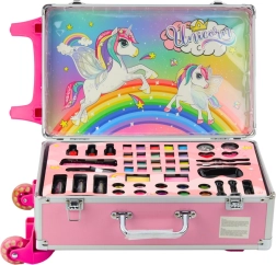 - Großer Koffer mit Einhorngrafik; Set aus sicherer Kinderkosmetik und Zubehör