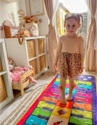 Die interaktive Musikmatte – Klavier von WOOPIE bringt Spaß für die ganze Familie. Kinder können tanzen, spielen und singen und dabei Koordination sowie musikalisches Empfinden fördern. Die Matte ist weich, hat eine rutschfeste Unterseite, verfügt über 10 Klaviertasten und Symbole von 8 Instrumenten, mehrere Abspielmodi, Aufnahme und Wiedergabe und schaltet nach 3 Minuten Inaktivität in den Energiesparmodus.