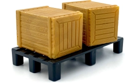 Zum Set gehören kleine Nachbildungen von Holzkisten, die das realistische Spiel verstärken.