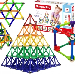 Mit 70 farbigen Teilen bietet das Set unbegrenzte Gestaltungsmöglichkeiten, von geometrischen Formen bis hin zu Buchstaben und Zahlen.