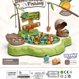 Begeben Sie sich auf prähistorische Angeltour mit einem Spiel, das Kinder sofort fesselt. Die runde Drehscheibe rotiert und die Dino-Mäuler öffnen und schließen sich rhythmisch – Ziel ist es, sie im richtigen Moment mit der magnetischen Angelrute zu fangen. Das Spiel fördert Geduld, Aufmerksamkeit und die Zusammenarbeit zwischen Kindern und Erwachsenen.
