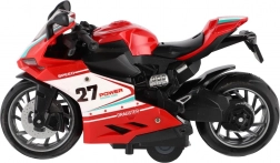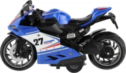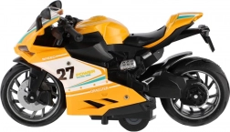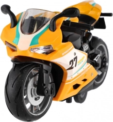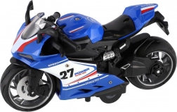 Dieses Plastik-Straßenmotorrad kombiniert ein dynamisches Design mit kinderleichter Bedienung. Einfach nach hinten ziehen und loslassen – das Motorrad fährt schnell los und bietet Kindern actionreichen Spielspaß. Integriertes Licht und Sound sorgen für zusätzliche Realitätsnähe, sodass jede Fahrt wie ein echtes Rennen wirkt.