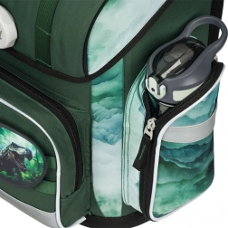 Der Ranzen ist aus wasserabweisendem Material gefertigt, das seinen gesamten Inhalt schützt. Der intuitive magnetische Fidlock-Verschluss bietet einfachen und schnellen Zugriff, während das spielerische System austauschbarer Abzeichen ermöglicht, das Aussehen nach Belieben anzupassen. Ein praktischer Organizer, eine isolierte Vordertasche und zwei symmetrische Seitentaschen sorgen für ausreichend Stauraum.