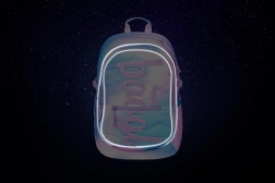 Hergestellt aus recyceltem, wasserbeständigem Material, bietet er eine Tragfähigkeit von bis zu 7 kg und ist mit reflektierenden Elementen für Sicherheit ausgestattet. Zusätzliche Zubehörteile im gleichen Design wie Federmäppchen und Schuhbeutel sind erhältlich.
