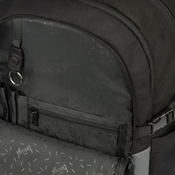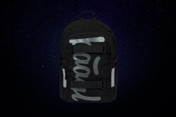 Das Außenmaterial ist recycelt und wasserabweisend, sodass der Rucksack wechselhaftem Wetter zuverlässig standhält. Für Sicherheit sorgen markante reflektierende Elemente für bessere Sichtbarkeit in der Dämmerung und bei Dunkelheit. Seitentaschen aus robustem Material bieten Platz für eine Trinkflasche, hinzu kommen langlebige YKK-Reißverschlüsse und vordere Riemen zur Befestigung eines Skateboards. Der Rucksack kann außerdem mit Federmappe, Schuhbeutel und weiterem Zubehör im gleichen Design kombiniert werden; ein stylischer Anhänger ist inklusive.