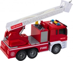 Das Highlight ist das funktionsfähige Wassersystem: Nach dem Befüllen des Tanks und Drücken der Pumpe beginnt an der Spitze des ausziehbaren Arms Wasser zu spritzen. Die Leiter ist ausziehbar, verstellbar und um 360° drehbar; außerdem gibt es ausziehbare Stützen für Stabilität sowie seitliche Türen mit Schlauchaufbewahrung.
