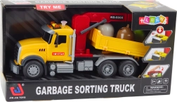 Dieser Müllsortierwagen macht Umweltbildung zum Vergnügen. Kinder können mit dem beweglichen Kranarm Container anheben und absenken, Motor-, Rückfahr- und Hupengeräusche einschalten und blinkende Blaulichter aktivieren – für ein besonders realistisches Erlebnis städtischer Dienste.