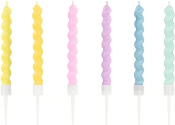 Pastell-spiralförmige Kuchenkkerzen sind ideal für jede Feier. Tolle Farben - ihre sechs Pastelltöne bringen Lebendigkeit und Spaß auf jeden Kuchen.
