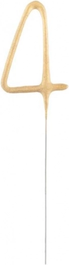 Die goldene Wunderkerze in Form der Ziffer Vier ist ideal zum Verzieren einer Torte bei einer Geburtstags- oder Jubiläumsfeier. Fügen Sie einen besonderen Funken hinzu und sorgen Sie für eine unvergessliche Atmosphäre.