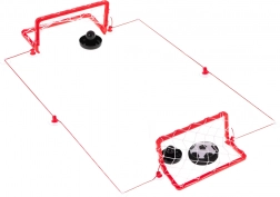 Zwei Tore, Schläger und eine Schnur zur Markierung des Spielfelds verwandeln jeden Tisch in eine Arena für schnelle Airhockey-/Fußball-Duelle.