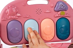 Diese rosa Lern-Spielmatte schafft einen sicheren, anregenden Platz für das tägliche Spielen. Der bunte Bogen mit hängenden Spielzeugen motiviert das Baby zum Greifen und Festhalten und fördert die Hand-Auge-Koordination. Das interaktive Mini-Klavier mit beleuchteten Tasten bietet 3 Klangmodi – Tonleiter Do–Re–Mi–Fa, kurze Geräusche (z. B. Kinderlachen) und längere Melodien – und unterstützt so die Entwicklung von Gehör und Rhythmus.