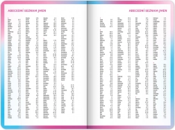 Wöchentlicher tschechischer Linienkalender mit Namen und Feiertagen.