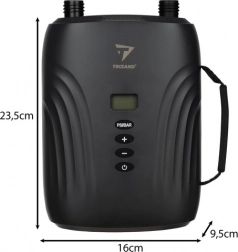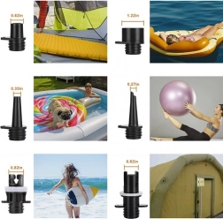 Die elektrische Pumpe Trizand ist mit sechs austauschbaren Düsen für verschiedene Wassergeräte ausgestattet, einschließlich Paddleboards, Kajaks und anderer Boote. Damit können Sie Ihre Ausrüstung schnell und mühelos mit einer Leistung von bis zu 350 l/min und einem maximalen Druck von 20 PSI aufpumpen.