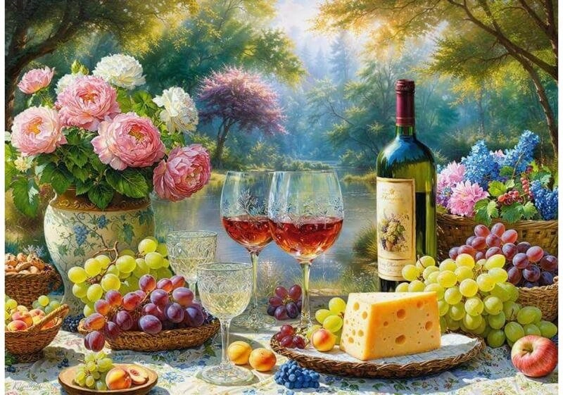 Tauchen Sie ein in eine Welt der Ruhe und Konzentration mit dem eleganten Motiv des Wein-Stilllebens. Dank ausgewogener Schwierigkeit und präzisem Stanzschnitt verläuft das Puzzeln fließend und macht Spaß – egal, ob Sie Anfänger oder erfahrener Puzzle-Liebhaber sind.