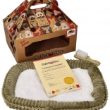 Das sanfte Heben und Senken des Brustkorbs erweckt das Spielzeug zum Leben. Die Schlafposition im Körbchen wirkt beruhigend und lädt zum Streicheln ein.