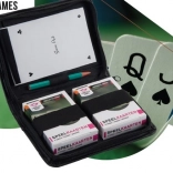 Dieses Kartenset ist ideal für alle Liebhaber von Kartenspielen. Neben zwei Kartendecks enthält es einen eleganten Notizblock mit Bleistift – perfekt zum Festhalten von Strategien, Notizen oder Spielergebnissen. Der Notizblock hat ein praktisches Format und der Bleistift liegt angenehm in der Hand.