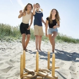 Das Set besteht aus Holz mit FSC-Zertifizierung – so habt ihr Spaß und unterstützt zugleich verantwortungsvolle Forstwirtschaft. Eine großartige Möglichkeit, Hand-Auge-Koordination, Reaktionsvermögen und Teamgeist zu fördern.