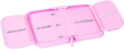 Das Etui ist so konzipiert, dass es sich beim Öffnen vollständig ausklappen lässt, was eine einfache Orientierung und einen bequemen Zugriff auf den Inhalt ermöglicht. Die festen Gummischlaufen im Inneren sind ideal, um nicht nur klassische Stifte, sondern auch dreikantige Buntstifte und Fasermaler zu fixieren.