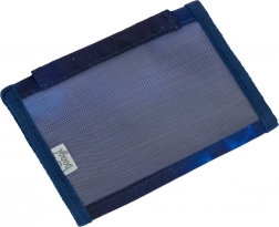 Die Geldbörse besteht aus recyceltem Textilgewebe mit verstärkten Kanten für längere Haltbarkeit. Die verstellbare Kordel mit Sicherheitsverschluss ermöglicht ein komfortables und sicheres Tragen am Hals, der Klettverschluss erleichtert das schnelle Öffnen und Schließen.