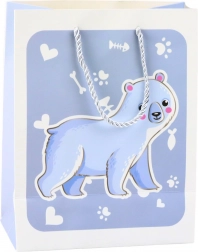 Diese bunte Geschenktasche ist die ideale Lösung zum Verpacken eines Geschenks für ein Kind oder für jeden, der niedliche und märchenhafte Muster liebt. Die Tasche ist aus hochwertigem Papier gefertigt, was ihr Haltbarkeit und ästhetisches Aussehen verleiht. Jede Tasche ist mit fröhlichen dreidimensionalen (3D) Motiven von Tieren wie Flamingo, Delfin, Eisbär und Schaf geschmückt, die von einem bunten Hintergrund mit niedlichen Herzen und Pfoten umgeben sind.