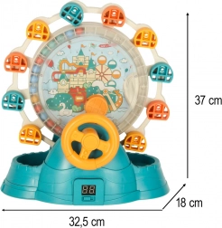 Dieses fantastische Riesenrad ist mit einem Lenkrad und einer Ballrutsche ausgestattet – eine ausgezeichnete Kombination für unterhaltsames und aktives Spielen. Kinder können ihre motorischen Fähigkeiten beim Einwerfen und Fangen der Bälle entwickeln, während Licht- und Soundeffekte eine zusätzliche Dimension des Spaßes bieten.