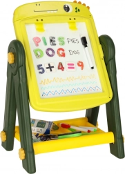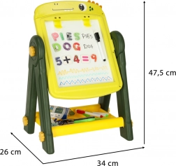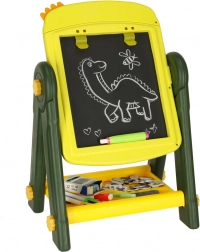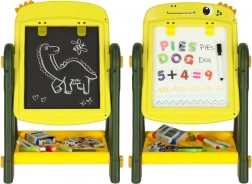 Diese zweiseitige Lerntafel ist ein idealer Helfer zur Förderung von Kreativität und Lernen bei Kindern. Auf der einen Seite befindet sich eine magnetische weiße Oberfläche, die trocken abwischbares Malen und Schreiben mit Markern ermöglicht, während die andere Seite als klassische schwarze Kreidetafel dient. Verziert mit einem fröhlichen Dinosauriermotiv begeistert die Tafel jedes Kind durch ihre Farben und vielseitigen Einsatzmöglichkeiten.
