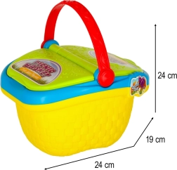 Dieser farbenfrohe Picknickkorb für Kinder ist eine großartige Wahl für Spiele zu Hause und im Freien. Dank realistischer Accessoires – Kunststoffobst, Getränke und Becher – können Kinder ihr eigenes „Festmahl“ zubereiten, Farben und Formen lernen und soziale Fähigkeiten spielerisch entwickeln. Das Set besteht aus robustem Kunststoff, ist leicht zu reinigen und trägt sich dank Griff bequem in den Park, an den Strand oder auf Ausflüge.