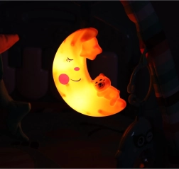 - Mond mit Schalter, der ein sanft farbwechselndes Licht aktiviert.