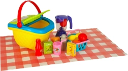 Der Picknickkorb besteht aus hochwertigem Kunststoff und Papier, das den Aktivitäten von Kindern standhält. Der Korb ist in vier fröhlichen Farben erhältlich: Lila, Rosa, Blau und Gelb.